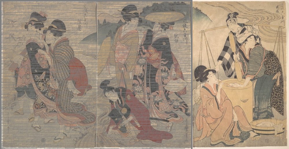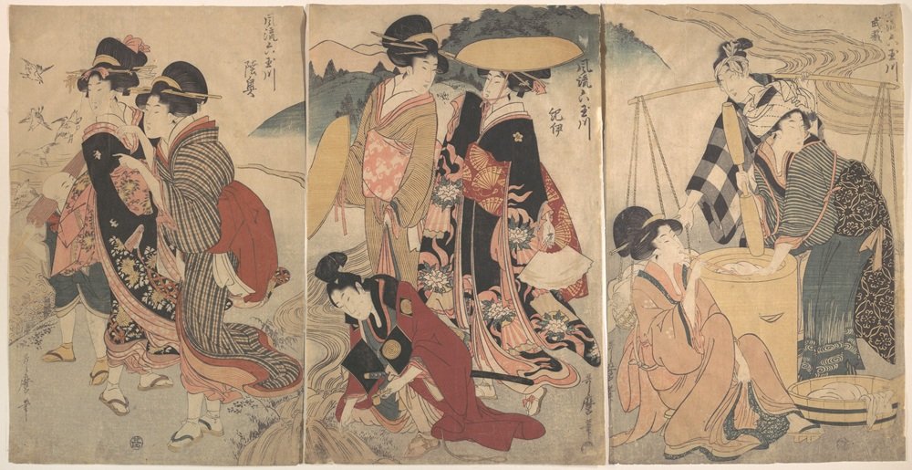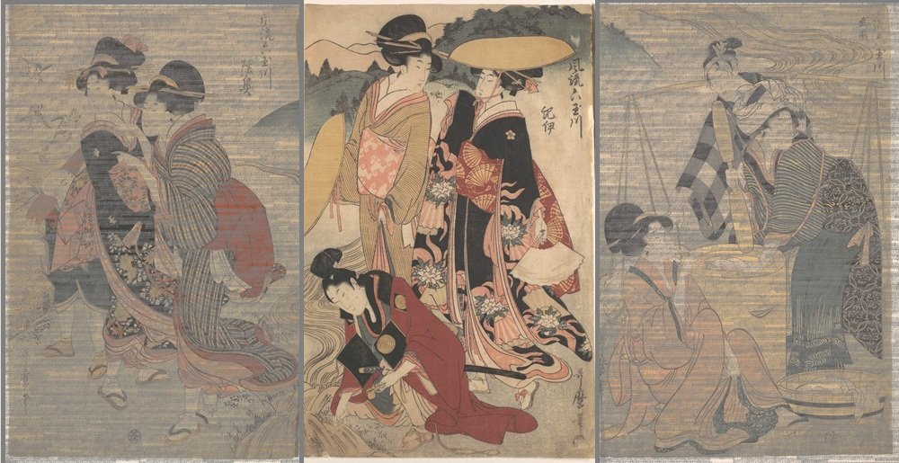 The elegant river spot series is a triptych of woodblock prints, three Ukiyo-e prints make up the series.